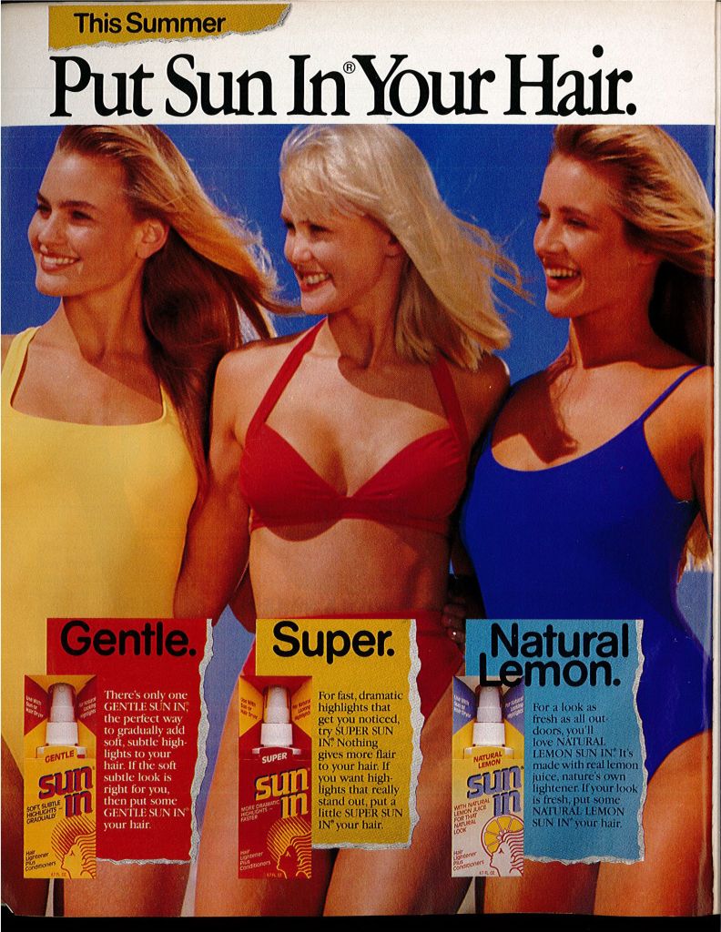 Now, braiding and making ‘crimps and curls’ might not have been T’s area of expertise, but we thought we had a surefire way of getting noticed when school started back up. One summer, T took some of her allowance, rode her bike to the local ‘Thrifty Drug Store’ and bought a bottle of SunIn. This is still sold today (T? Are you thinking what I’m thinking?) but I’m assuming the formula has changed in the last 35 years. Basically, you put a BIT on your hair, lay out a ‘short’ while, and then bam!…you look like Farrah Fawcett (once again, peeps…look her up…she was actually quite hot 🤭)